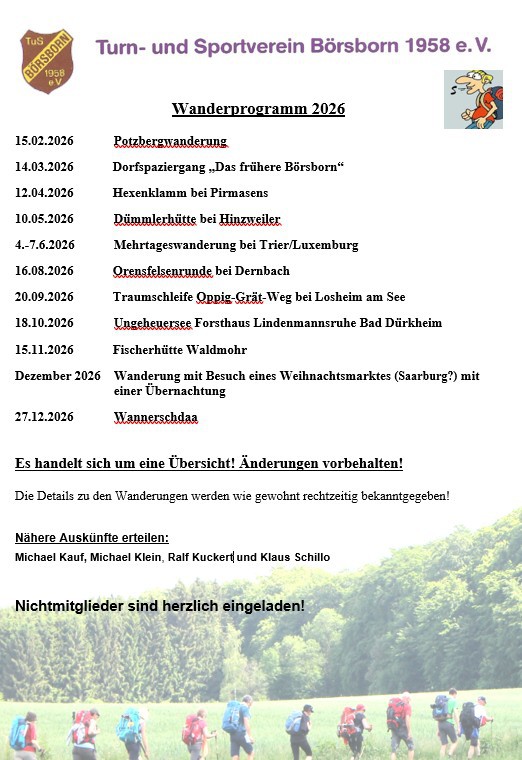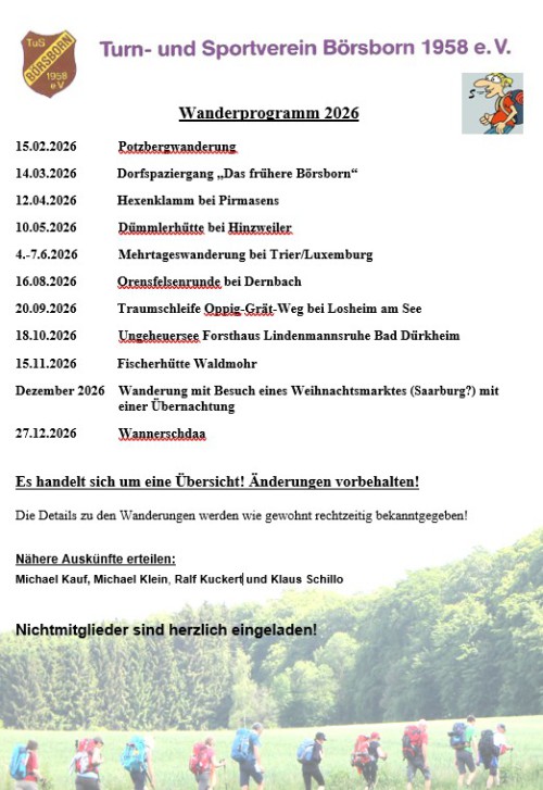 Ihr könnt die Word-Datei einfach befüllen, abspeichern und per Mail an Michael Klein (m.klein@tus-börsborn.de) oder Klaus Schillo (k.schillo@tus-börsborn.de) zurück senden, oder einfach ausgedruckt zur nächsten Wanderung mitbringen.
