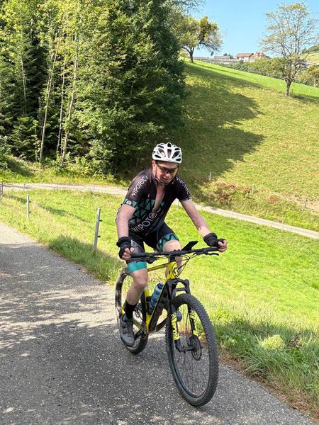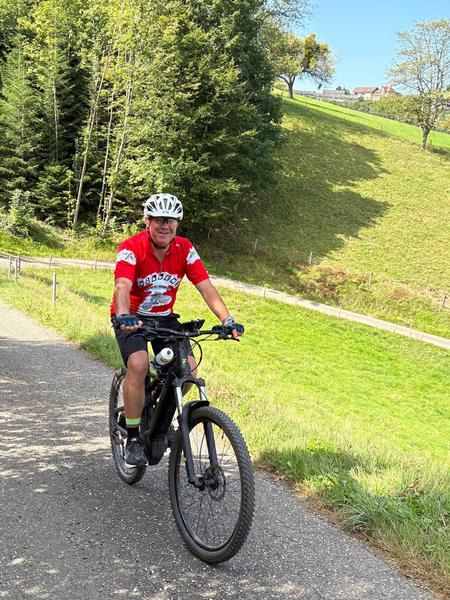Walter Weber strampelt mit Klapprad die Kalmit hoch